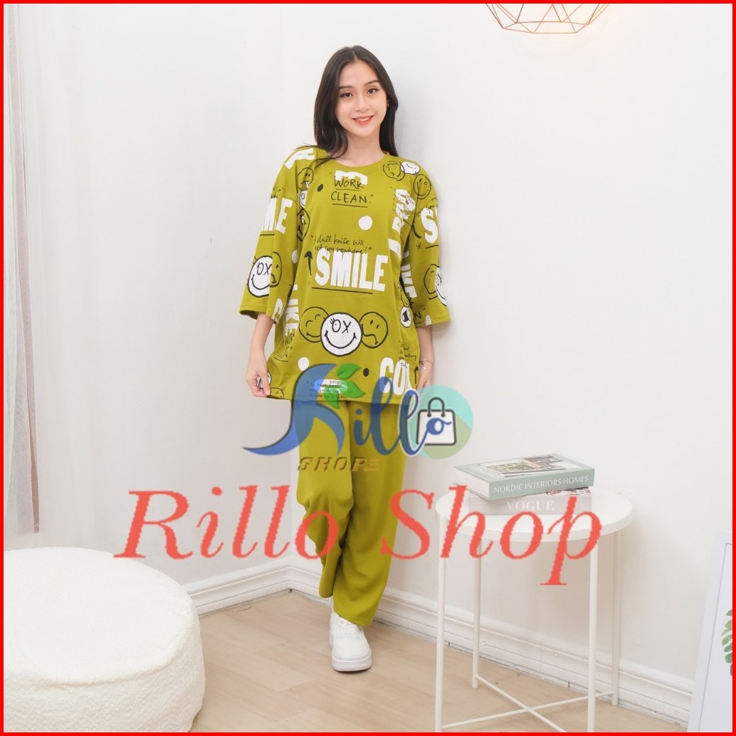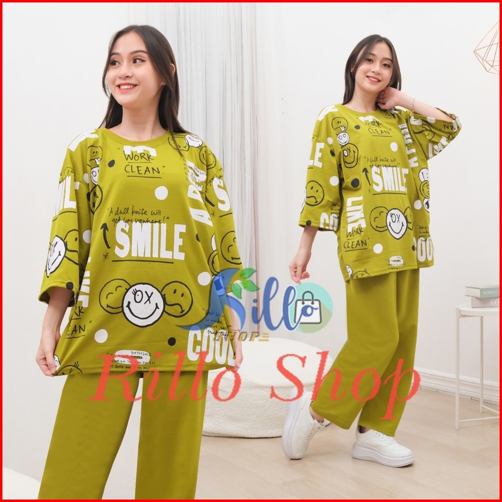 Setelan Oversize Wanita Cool Smile Bahan Crepe
