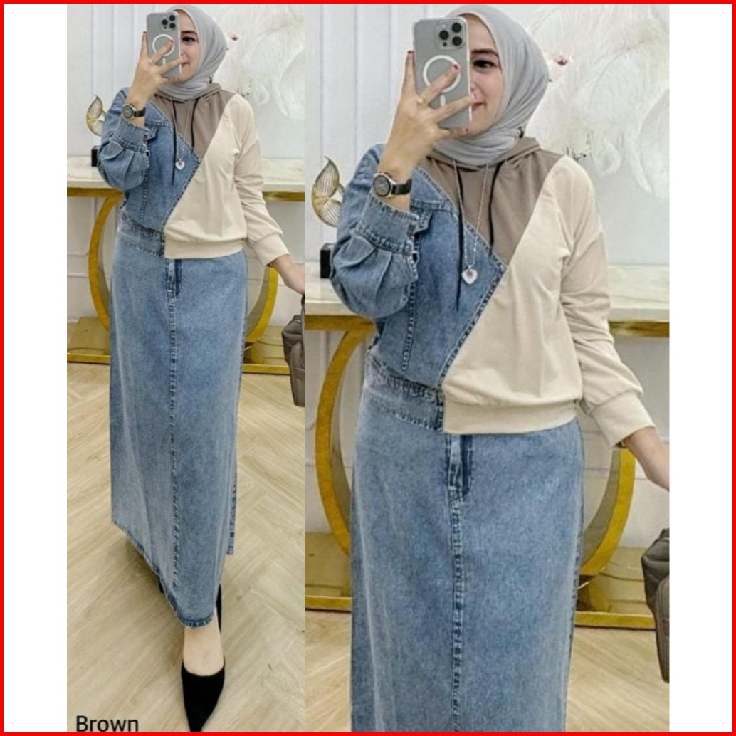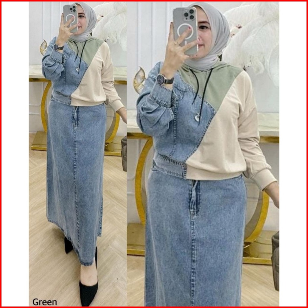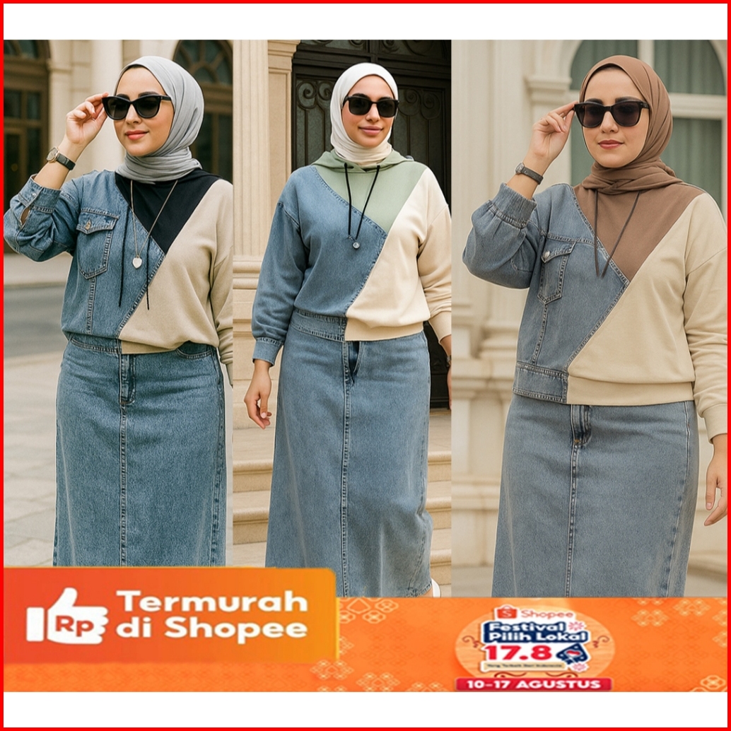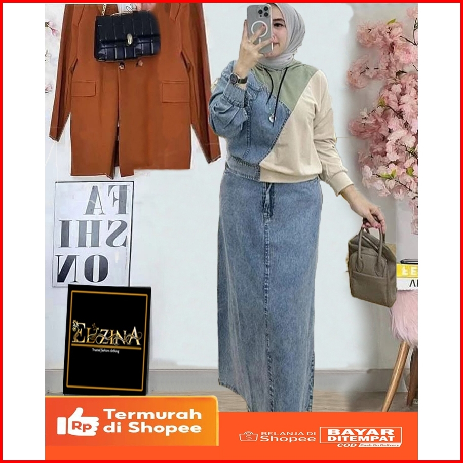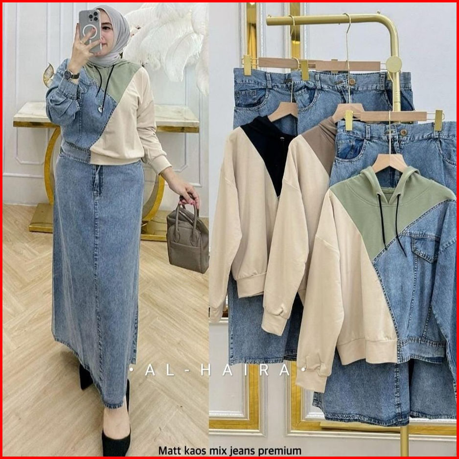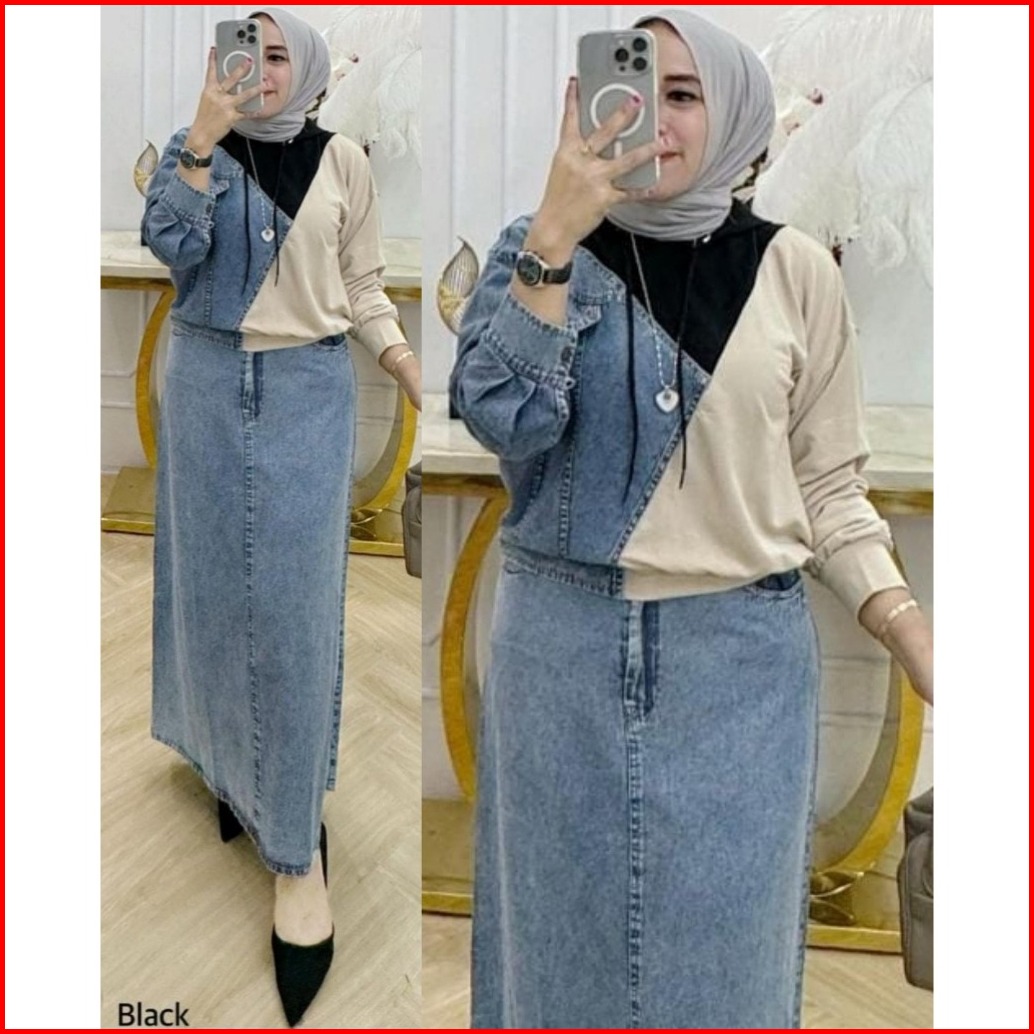 Hot Sale Terlaris Set Rok Jeans Alnami Bahan Adem