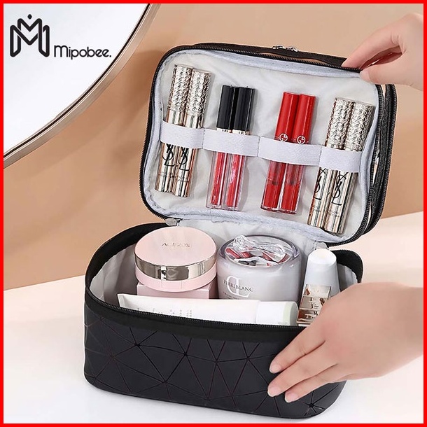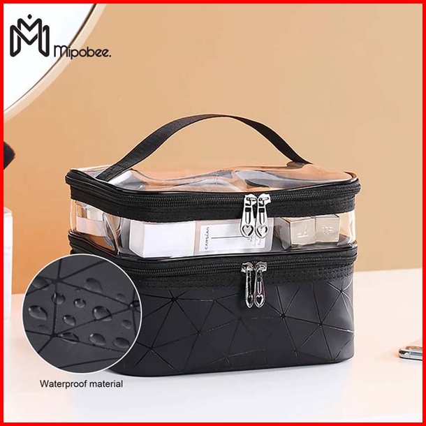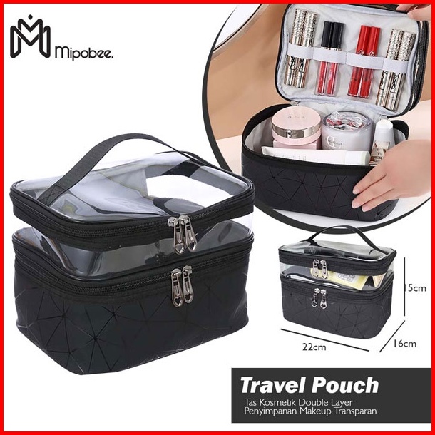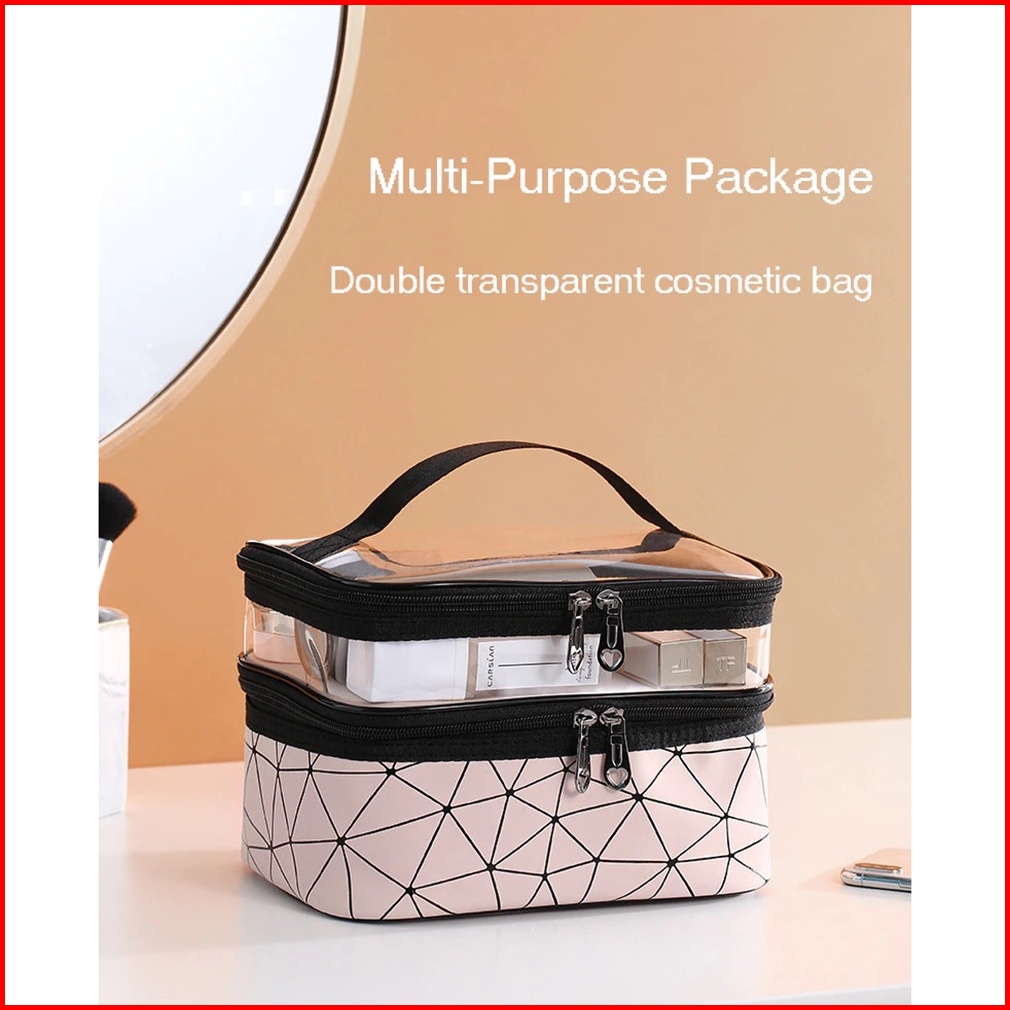 Tas Kosmetik Double Layer Travel Pouch Penyimpanan Makeup Transparan - Acc Make Up