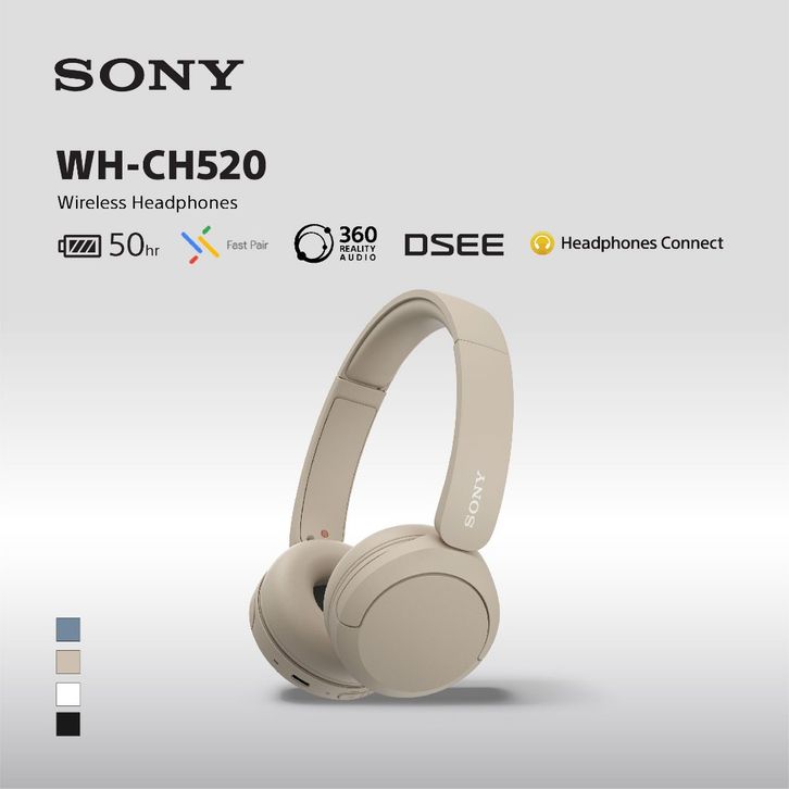 SONY WH-CH520 ON EAR WIRELESS HEADPHONE / CH520 / CH-520 - BEIGE ORIGINAL OFFICIAL STORE/ EARPHONE BLUETOOTH