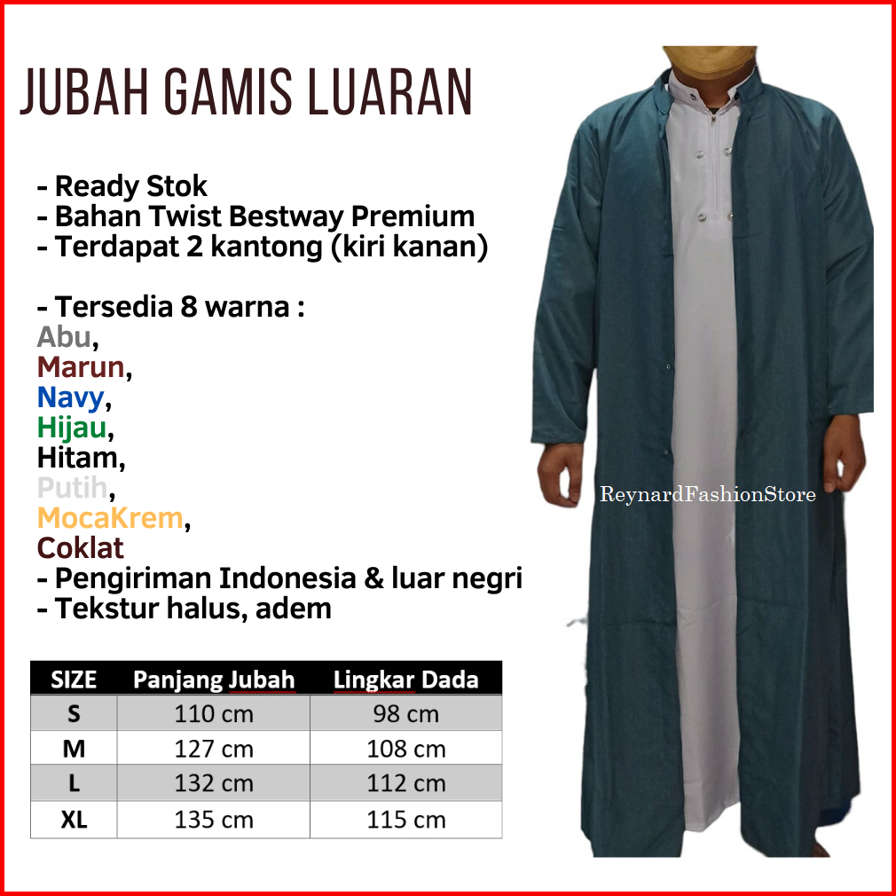 Jubah Luaran Abu, Jubah Luaran Navy, Luaran Mocca Cream, Jubah Luaran Hijau, Jubah Luaran Hitam, Jubah Luaran Putih, Jubah Luaran Maron