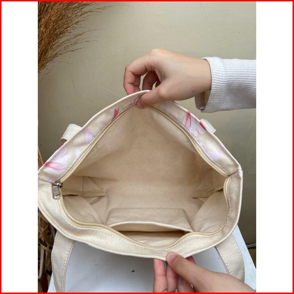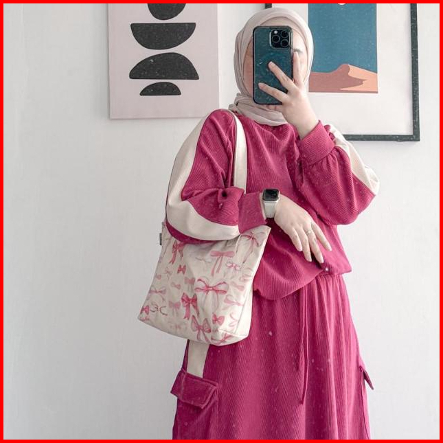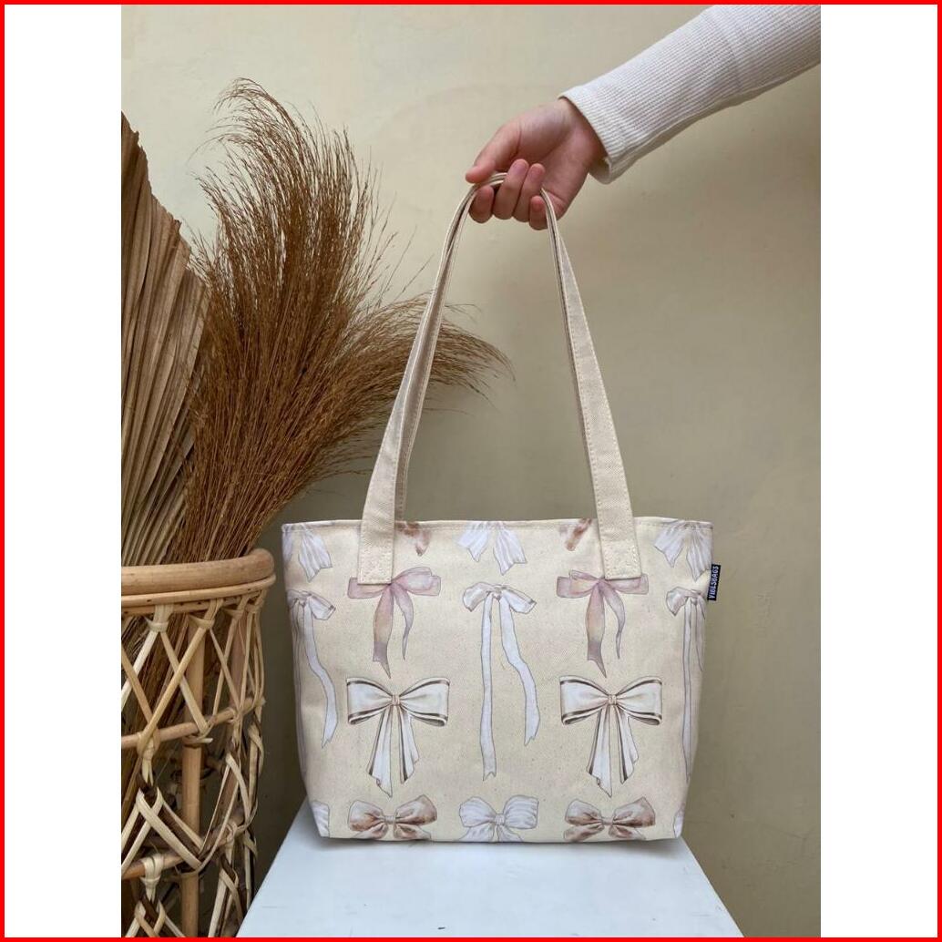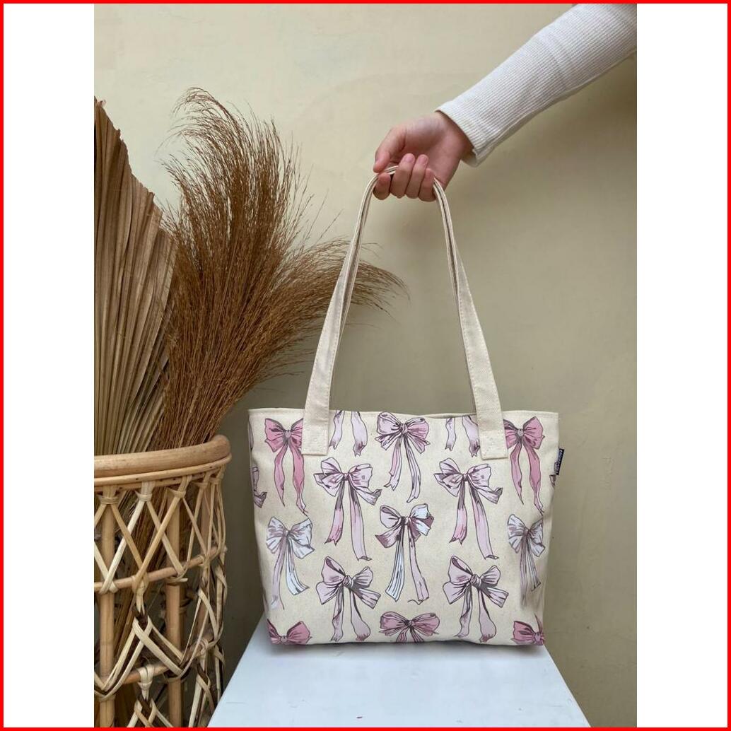 Vibesbags Coquette Tote Bag Kuliah Motif Pita Tas Kanvas Premium
