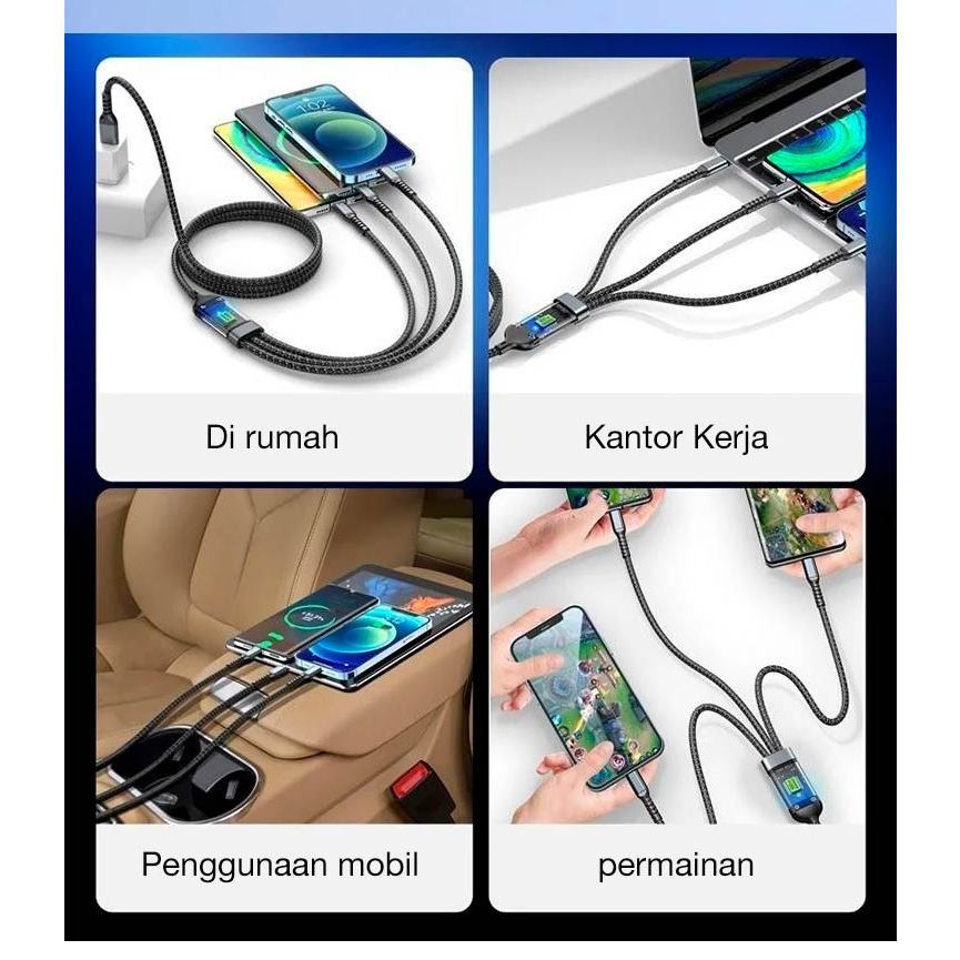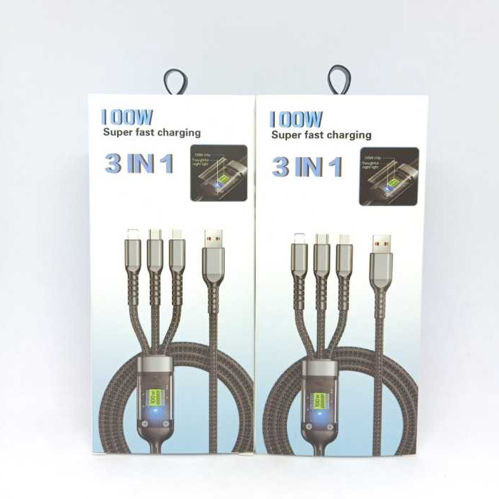 Kabel Data 3 in 1 Fast Charging 100W USB Micro, Type C, Lightning Cable 3in1 Best Quality