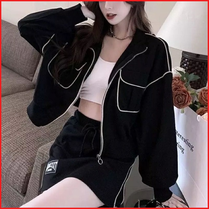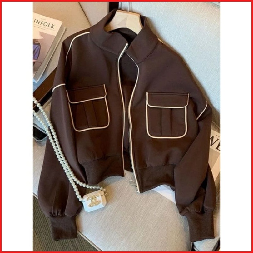 Termurah Di Vallina - White List Zip Pocket Jacket Outerwear Korean Remaja Wanita Premium