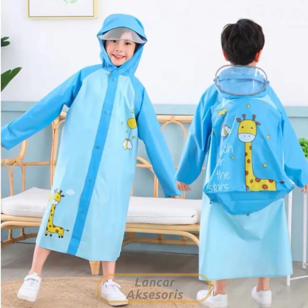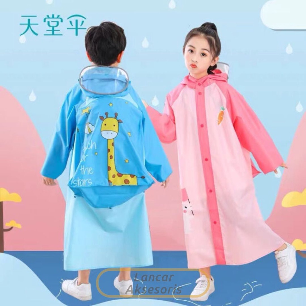 Jas Hujan Anak Penutup Tas Ransel Anti Air Hujan Basah Waterproof untuk Perempuan Laki Laki TK SD Mantel Poncho Ponco Terusan Karakter Lucu