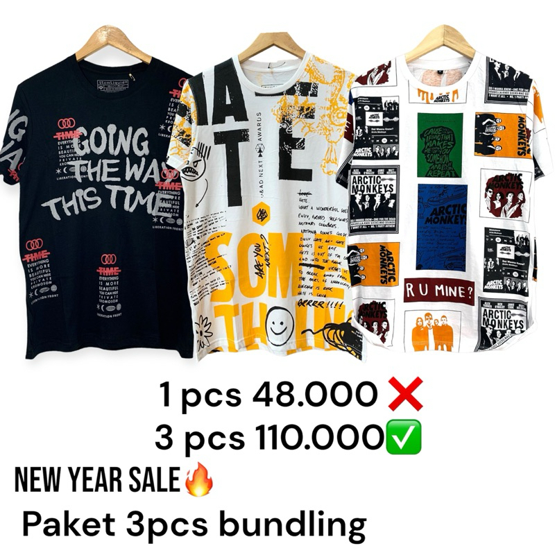 NRKY new year sale 3 PCS bundling 100 ribuan, bahan katun kaos distr pria kaos pria wanita unisex