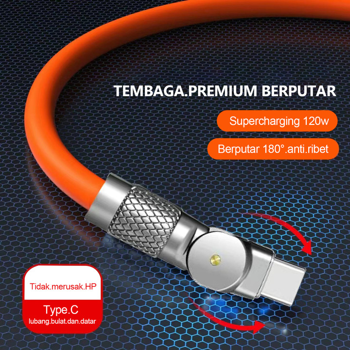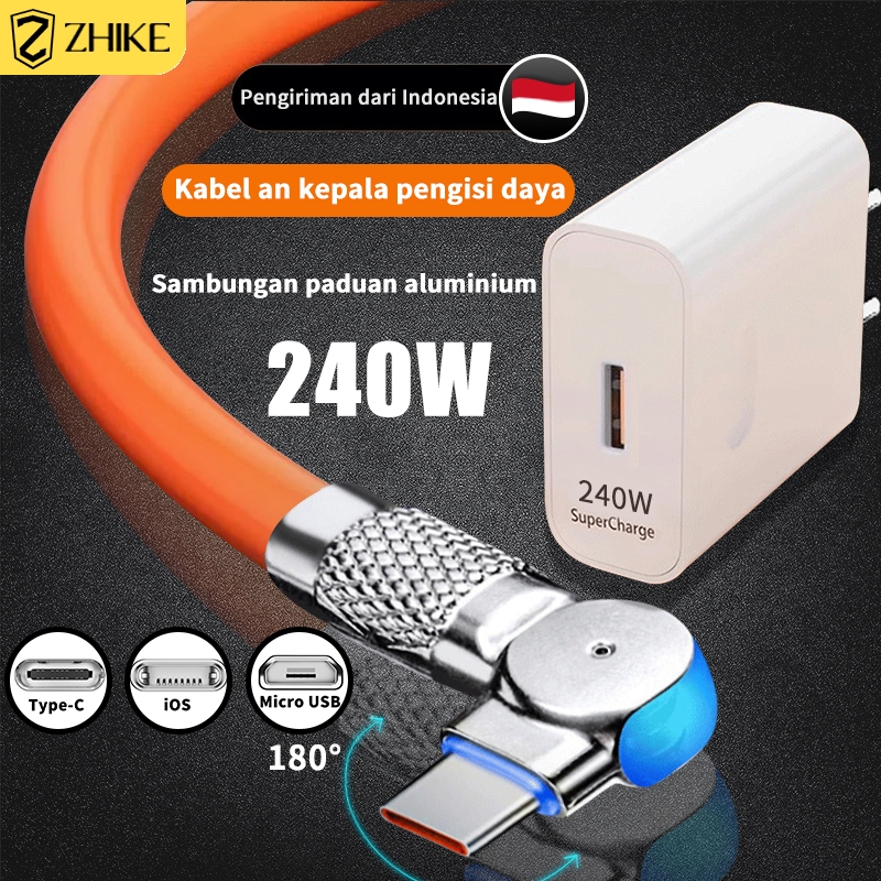 ZHIKE Kabel Data Fast Charging Kabel Casan Tipe C Micro USB dengan Adaptor 240W Rotasi 180° Panjang 1.5 Meter Antarmuka Paduan Seng Fast kepala Charger Type-C Port Putar dengan Lampu LED
