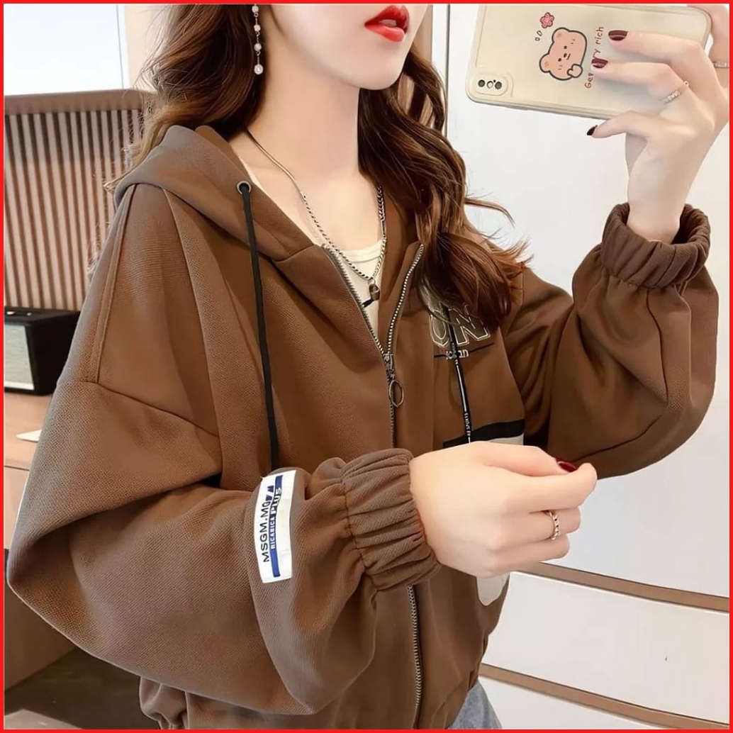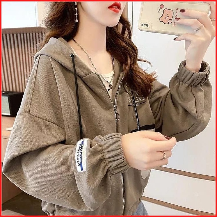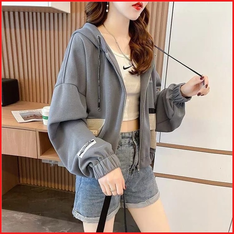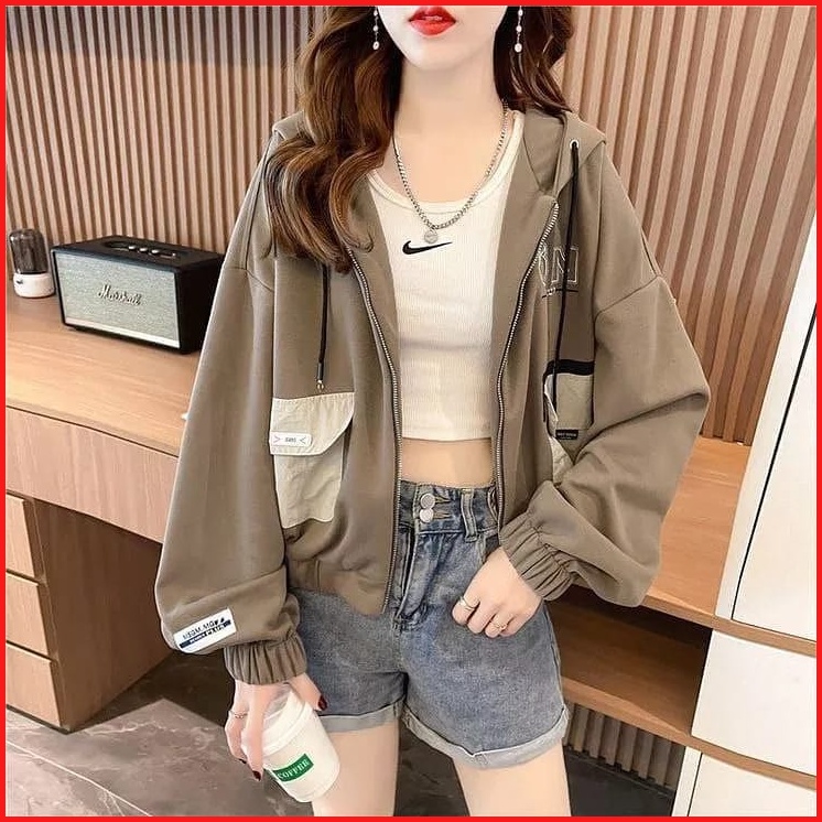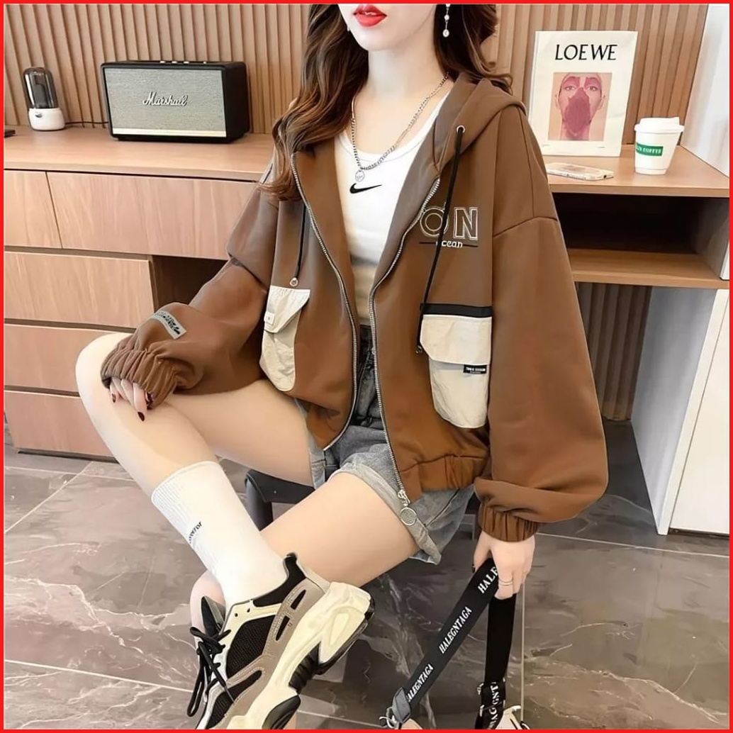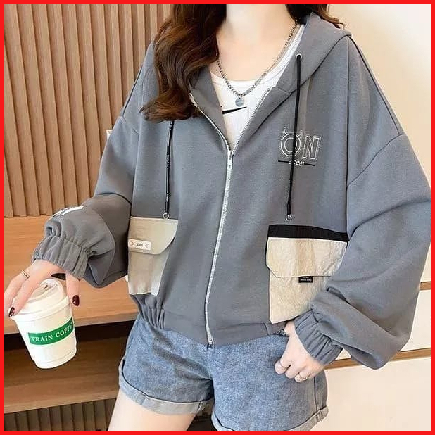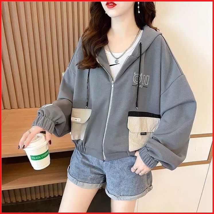 Termurah Di Vallina - On Ocean Ring Ziper Two Pocket Hoodie Jacket Outerwear Oversized Remaja Wanita Korean Style Premiu