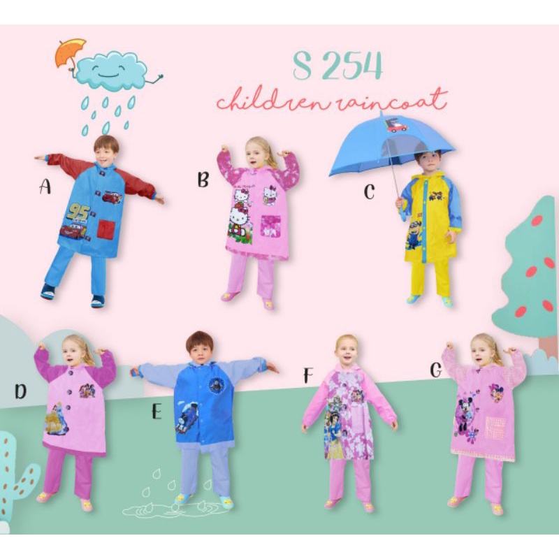 Jas Hujan Anak Celana Setelan Kids Raincoat Set With Pants 4 5 6 7 8 9 10 Tahun Mantel Ujan Karakter Avengers Spiderman Minion Spongebob Unicorn Minnie Mickey Kartun Hello Kitty