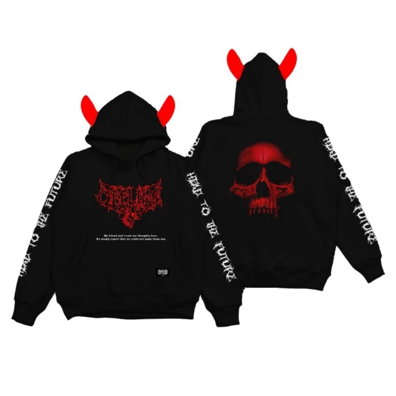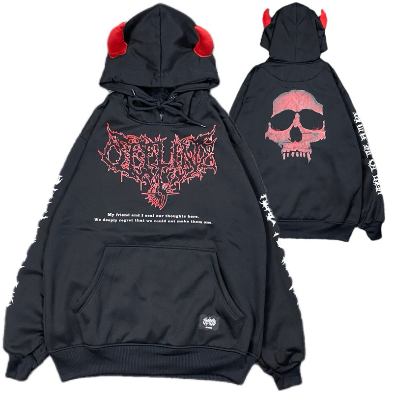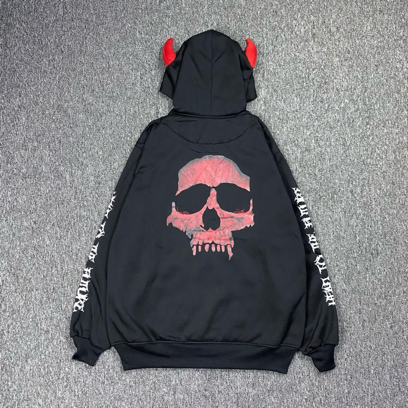 DEEPLY SKULL Hoodie Jumper Tanduk Unisex Pria dan Wanita Sweater Fleece Tebal Lembut Nyaman