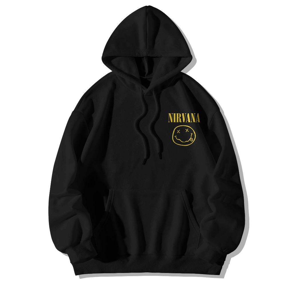 Jaket Sweater Hoodie Pria Wanita Jumbo Oversize Band Nirvana Bahan Fleece 240 Ukuran M L XL XXL