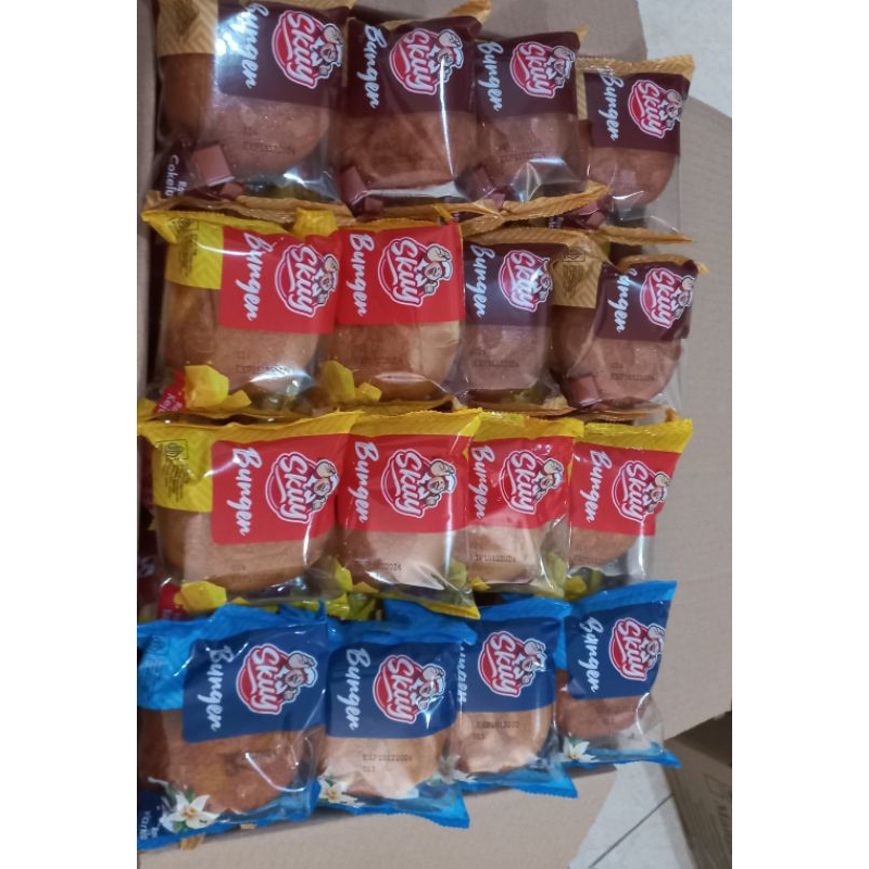 Roti SKUY Burger 1 dus isi 60pcs varian keju,vanilla,coklat