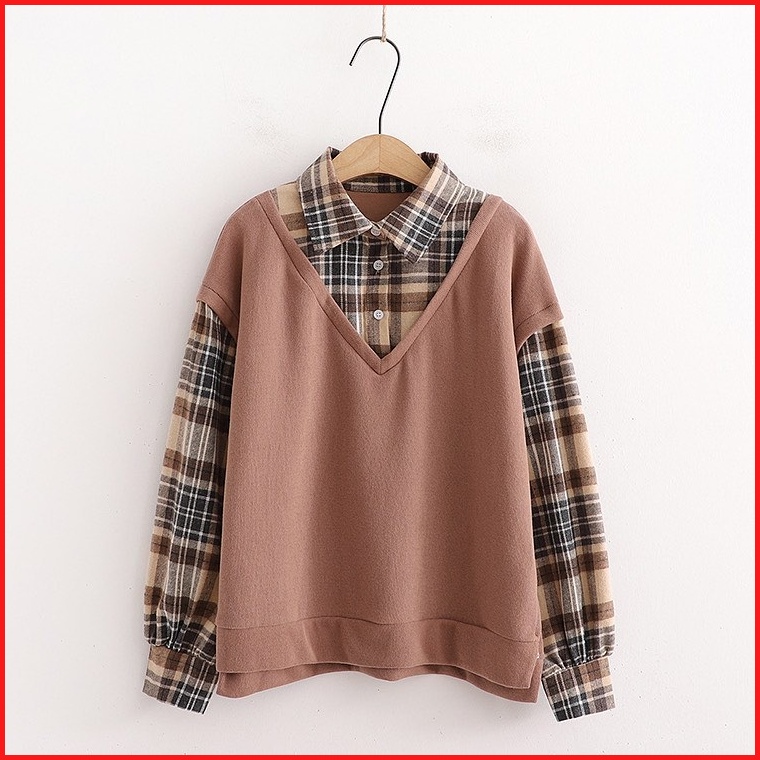 Femes Kimberly Flanel Blouse Combi Fold Terry Shirt Atasan Kemeja Flannel Top Muslim Wanita Premium Korean Style