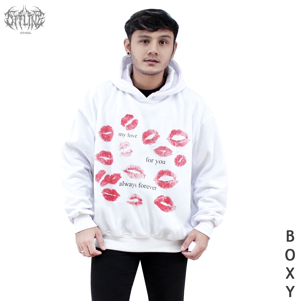 OFFLINE APPAREL Hoodie Jumper BOXY KISS MY LOVE / BRAND LOKAL / hoodie cowok cewek tebal ori