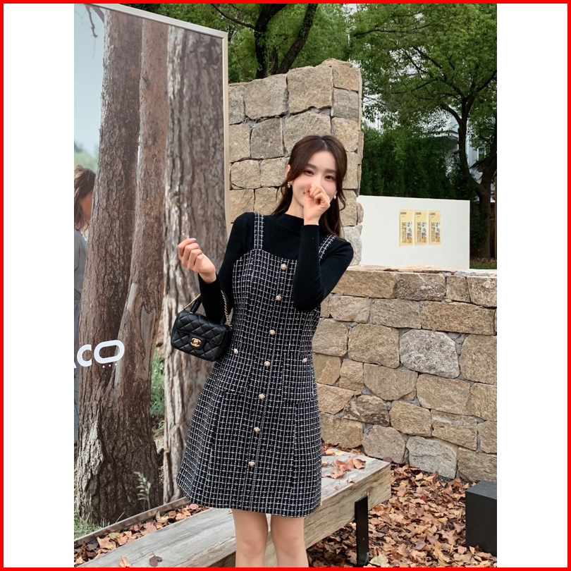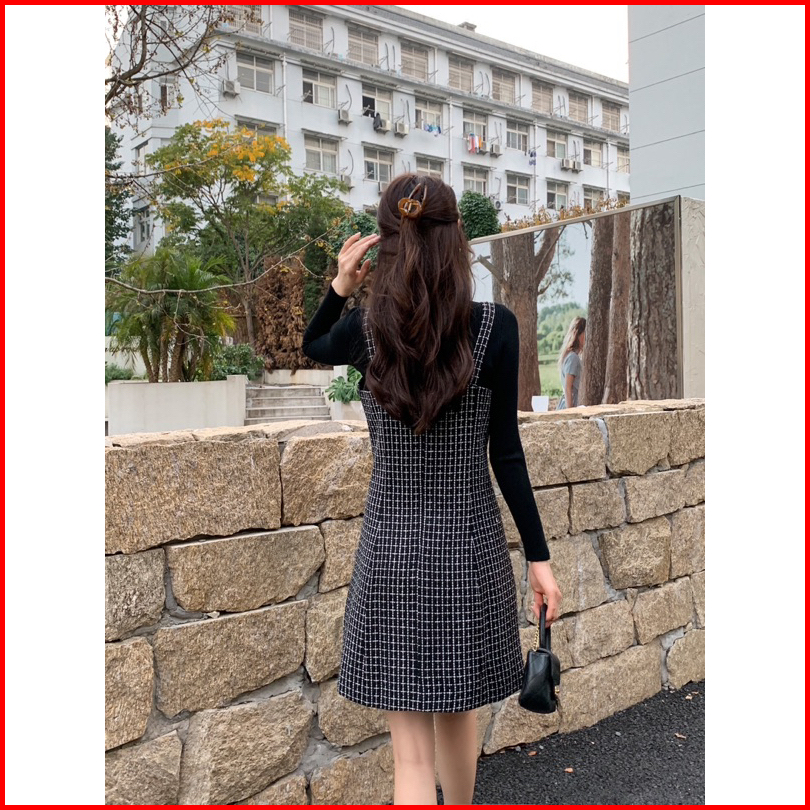 Tweed Dress Terusan Wanita New Winter Mx578