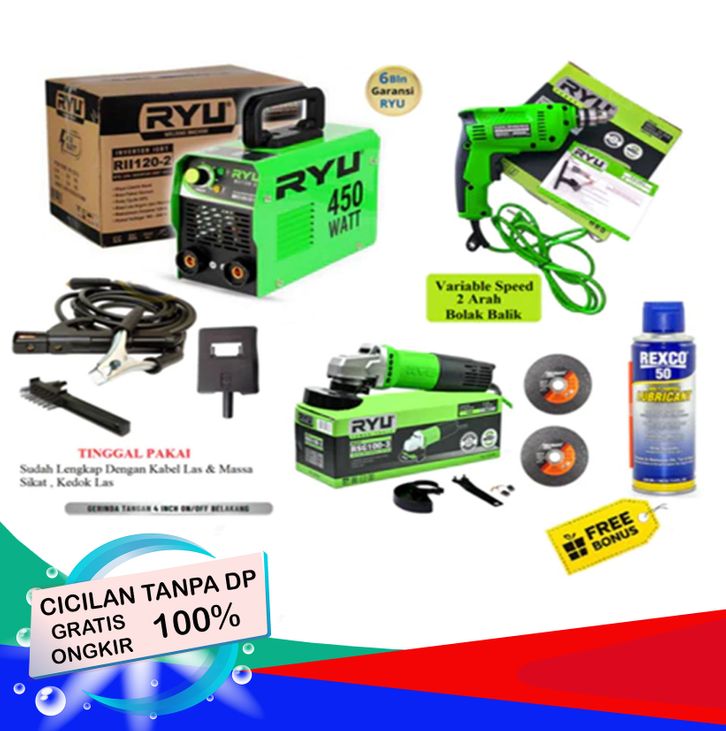 PAKET Hemat 3 ITEM Mesin Travo Las Listrik RII 120-2 450 watt Mesin Las 450 Watt RYU 120a Trafo Travo Las + Mesin Gerind