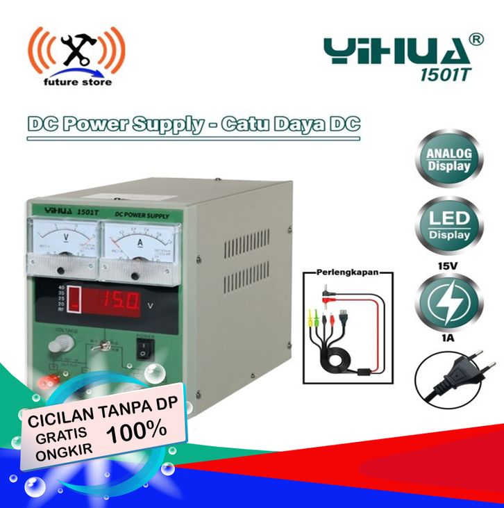 DC POWER SUPPLY YIHUA 1501T 1AMPER ORIGINAL- Power Supply Hp RF 0-15V DC 0-1A + Bazzer + Kabel