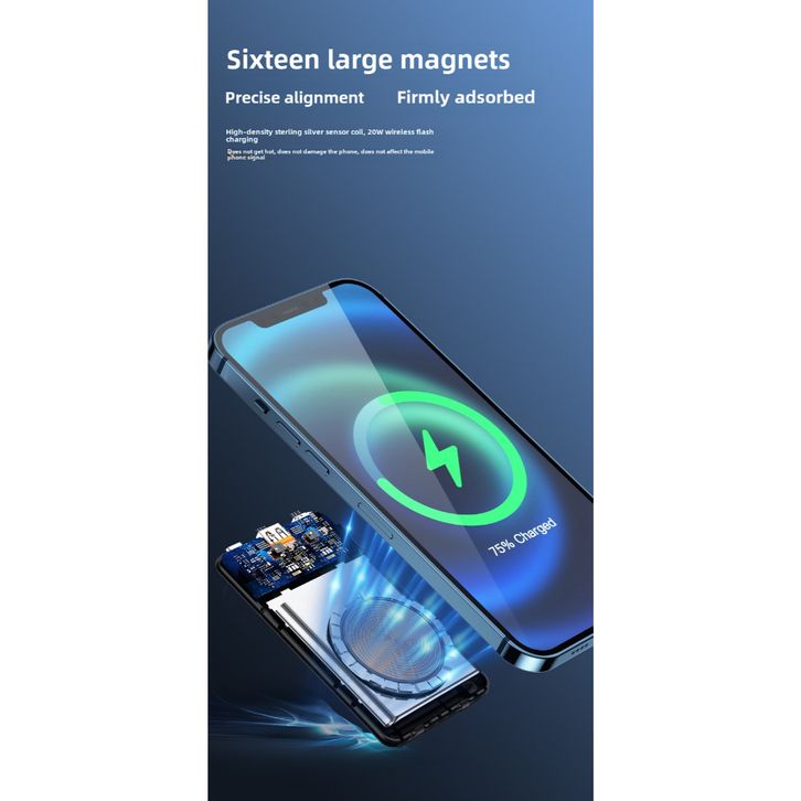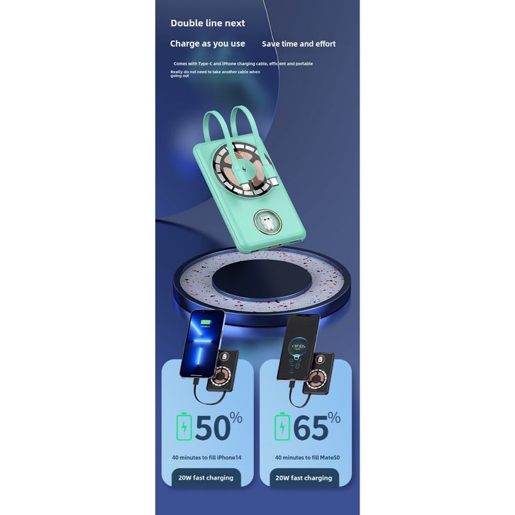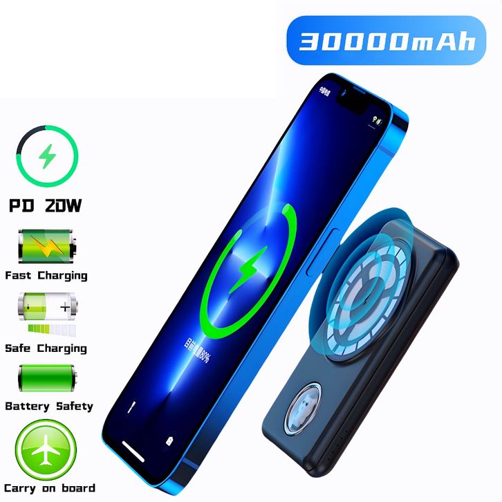 Wireless Powerbank 30000mAh Mini Fast Charging With 2 usb Kabel Data Type C Lightning