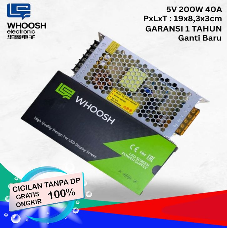 POWER SUPPLY INDOOR 5V 200W 40A SLIM WHOOSH READY STOK