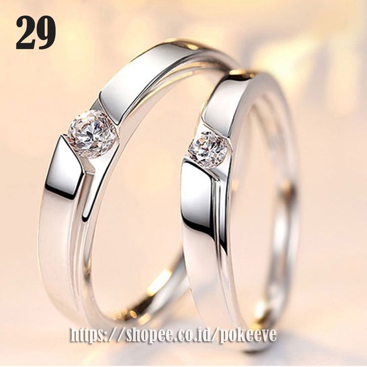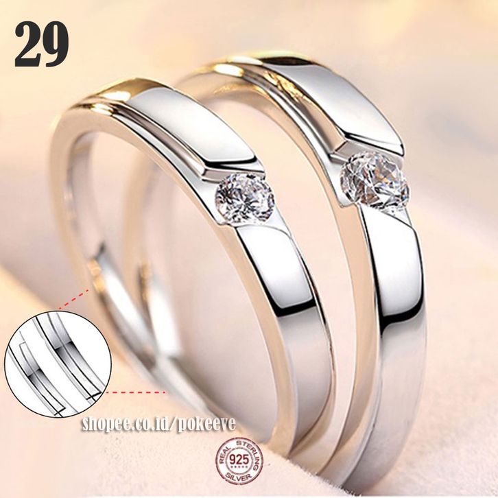 Cin cin Couple/ Tunangan Perak Pasangan/ Kawin Pria/ Wanita Sterling Silver S925 Ring