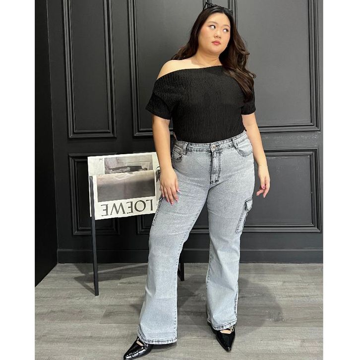 CELANA JEANS WANITA CARGO TALLER JEANS UKURAN NORMAL & JUMBO