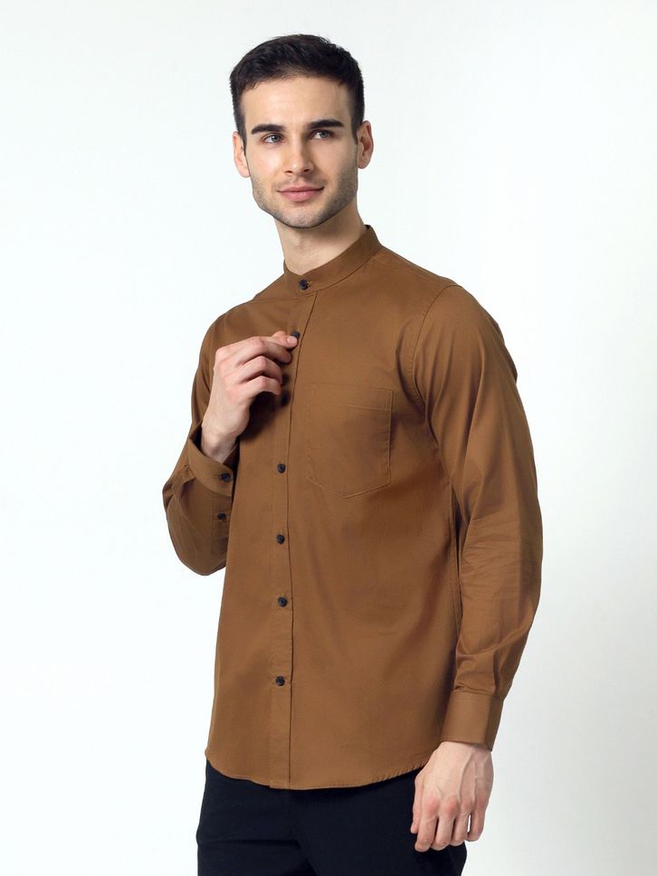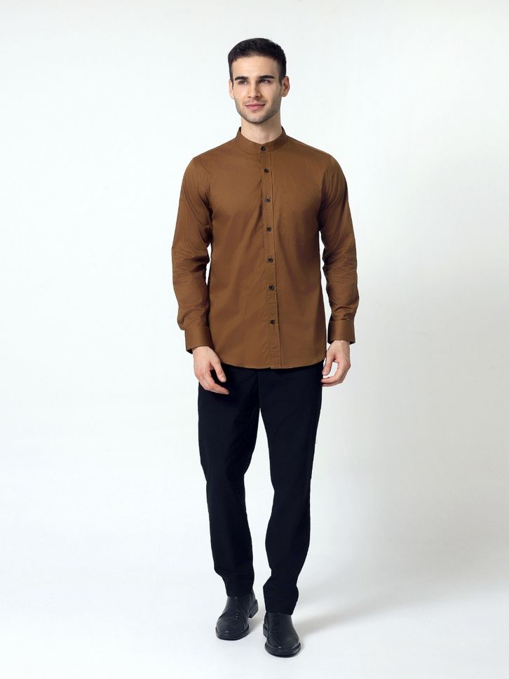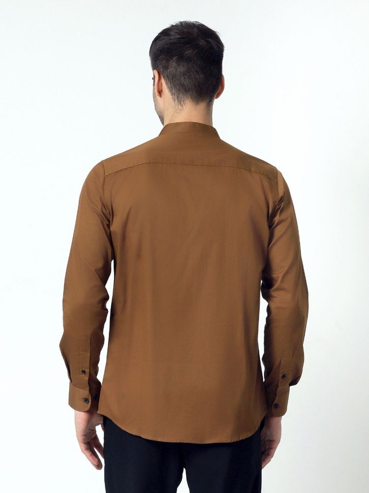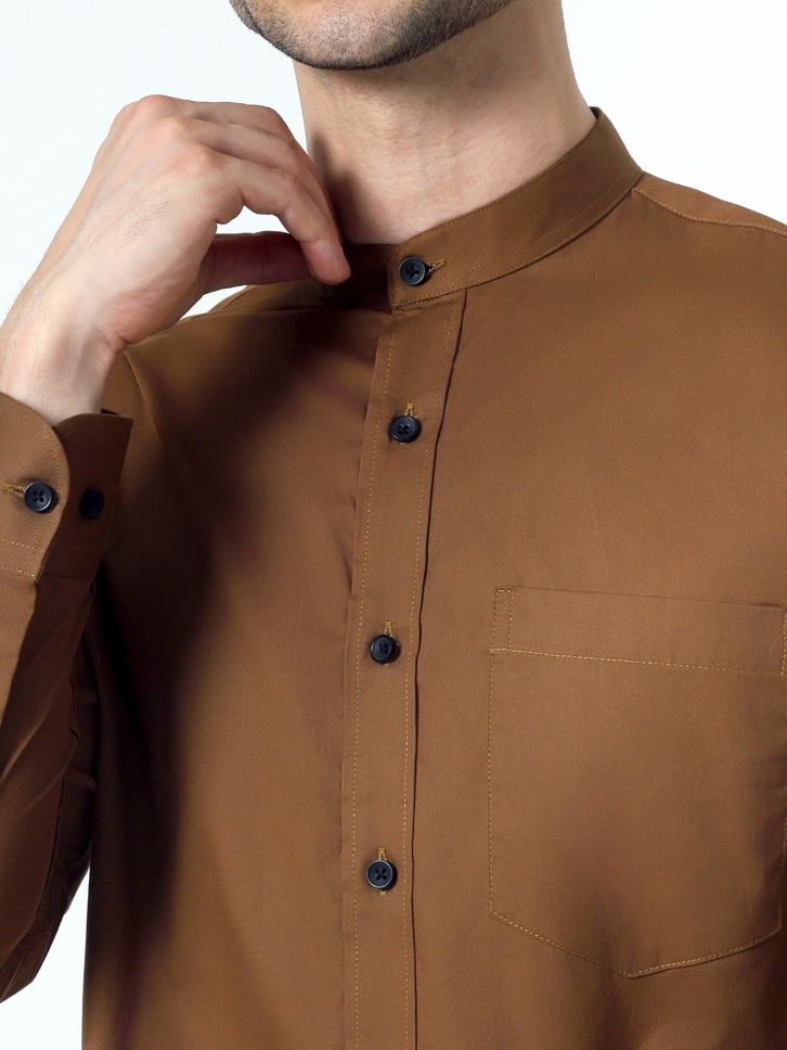 Kemeja Koko Pria Polos Cotton Well Badr Shirt Bronze Panjang Coklat