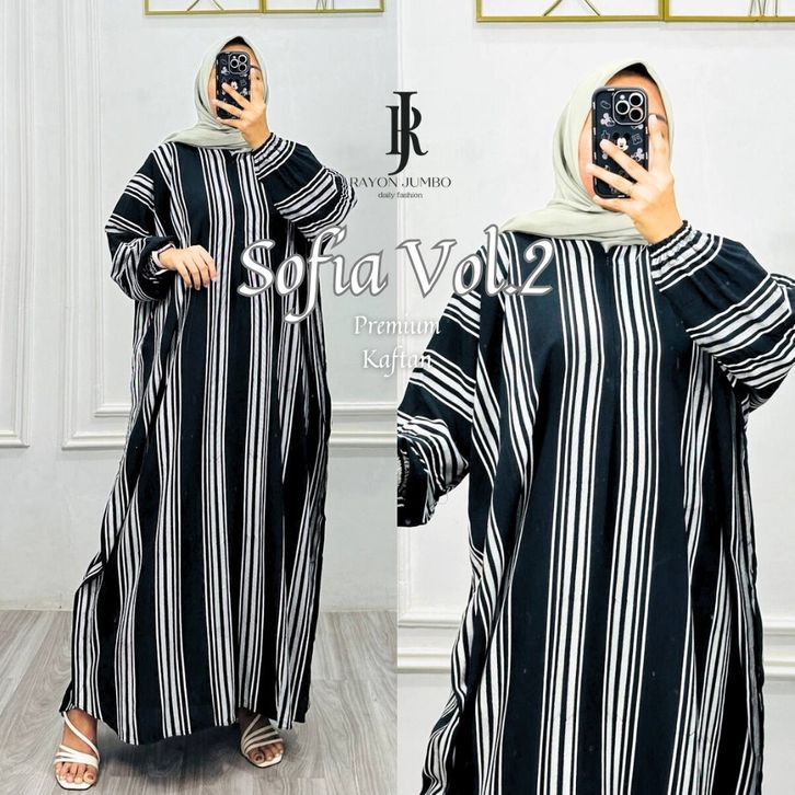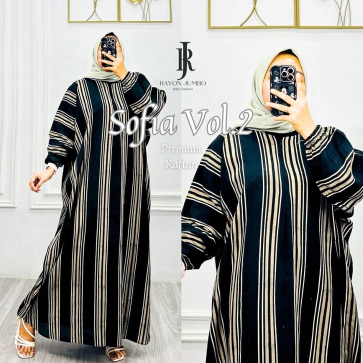 Sofia Vol.2 Gamis Kaftan Jumbo Terrbaru LD 170 Rayon Adem untuk sehari - hari atau Pengajian Kaftan Hitam
