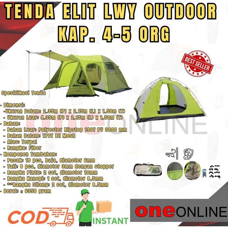 Tenda camping kemping gunung keluarga dome 5 orang 2 pintu bahan polyester ripstop elite lwy outdoor