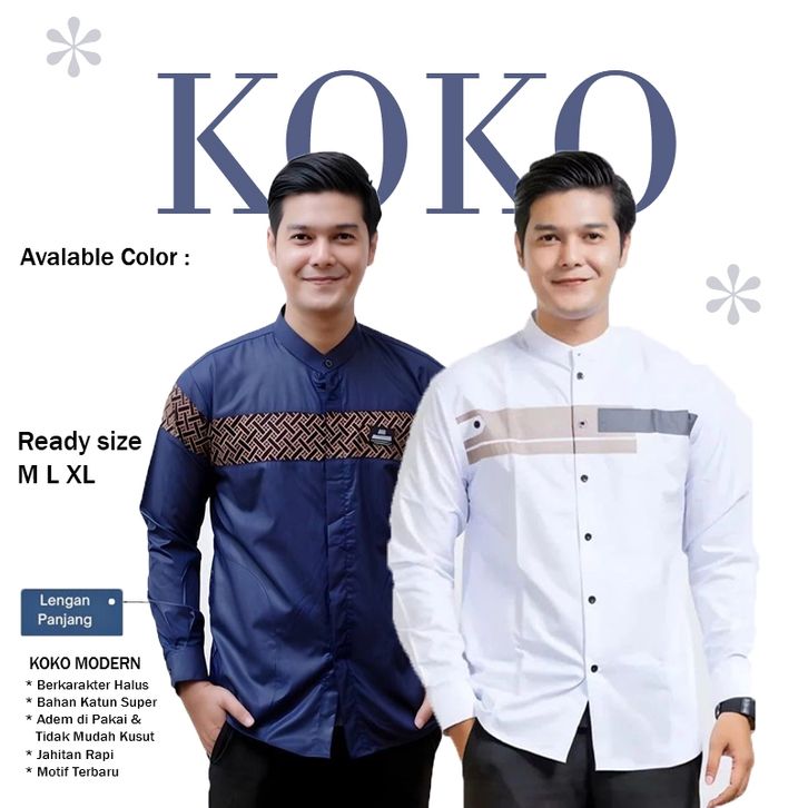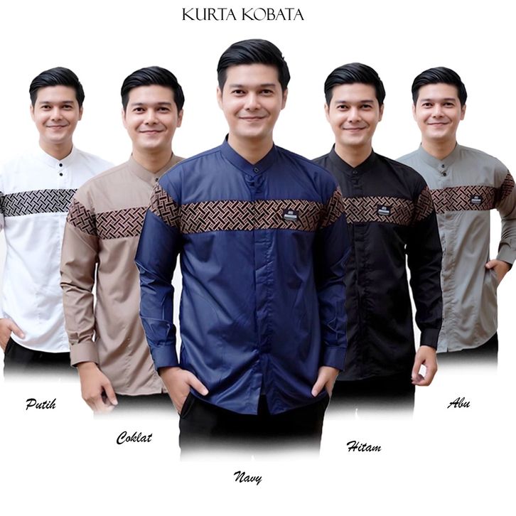Baju Koko Pria Lengan Panjang Motif Kobata Kombinasi Kemeja Koko Pria Kemeja Casual Warna Coklat Putih Hitam Stylish