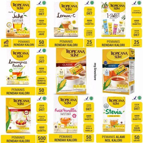 Gula Jagung / Corn Sugar Tropicana Slim Sweetener 25 x 2.5 gr Rasa ISweet, Lemon C, Diabtx, Classic