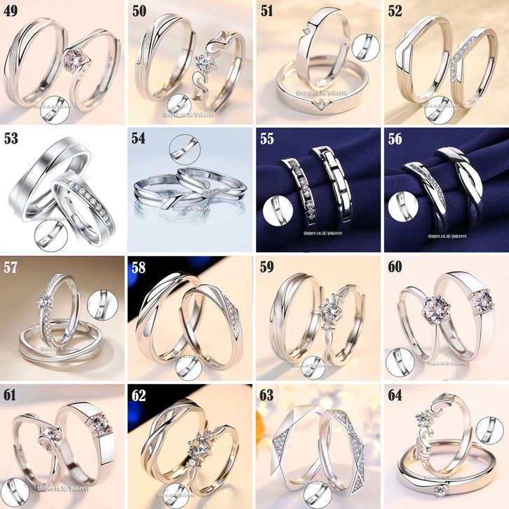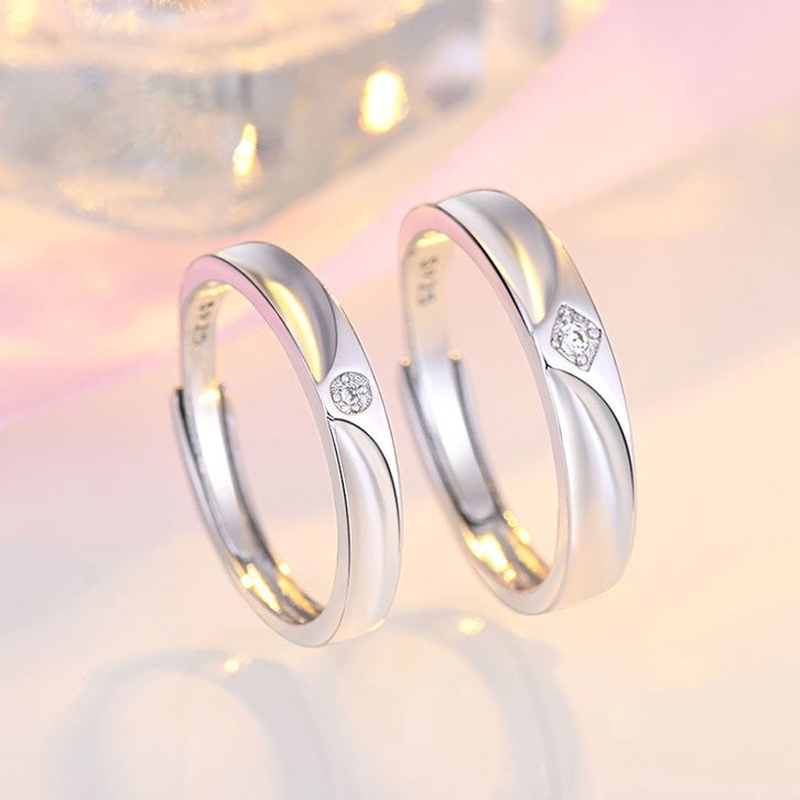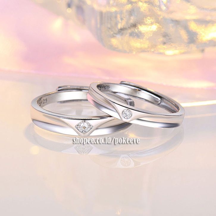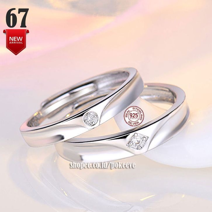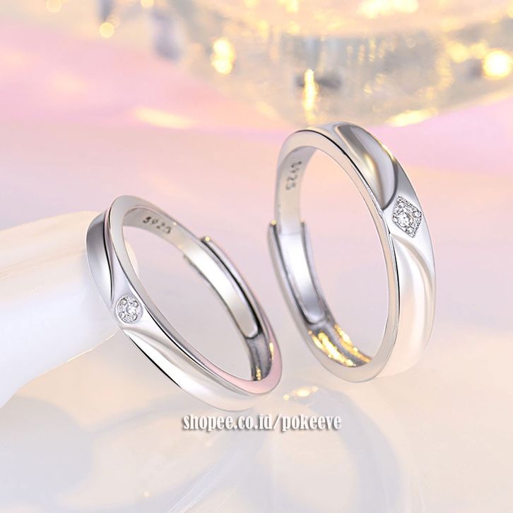 1 Pasang Cin cin Couple Compatible Open Adjustable Perak Sterling Silver S925 Rhodium Plated