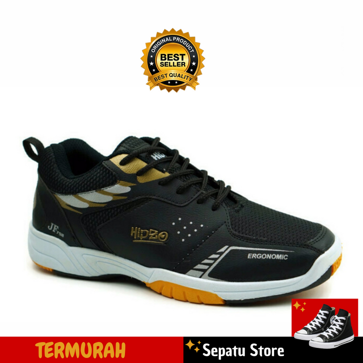 Sepatu Badminton Cowok Original / Sneakers Pria Bulu Tangkis Bahan Kulit Sintetis Premium