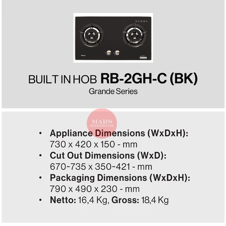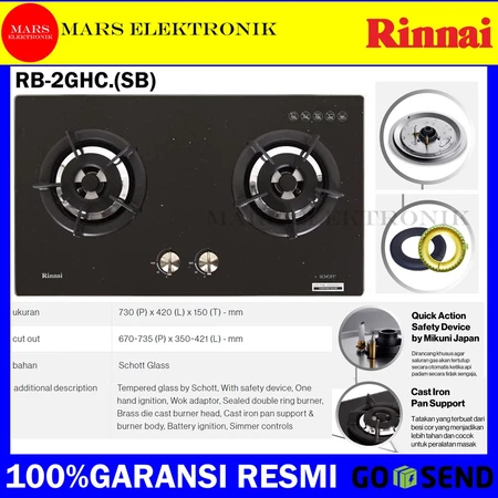 KOMPOR GAS RINNAI TANAM RB-2GH-C / 2 TUNGKU - SHINING BLACK / GARANSI RESMI RB 2GH C - READY