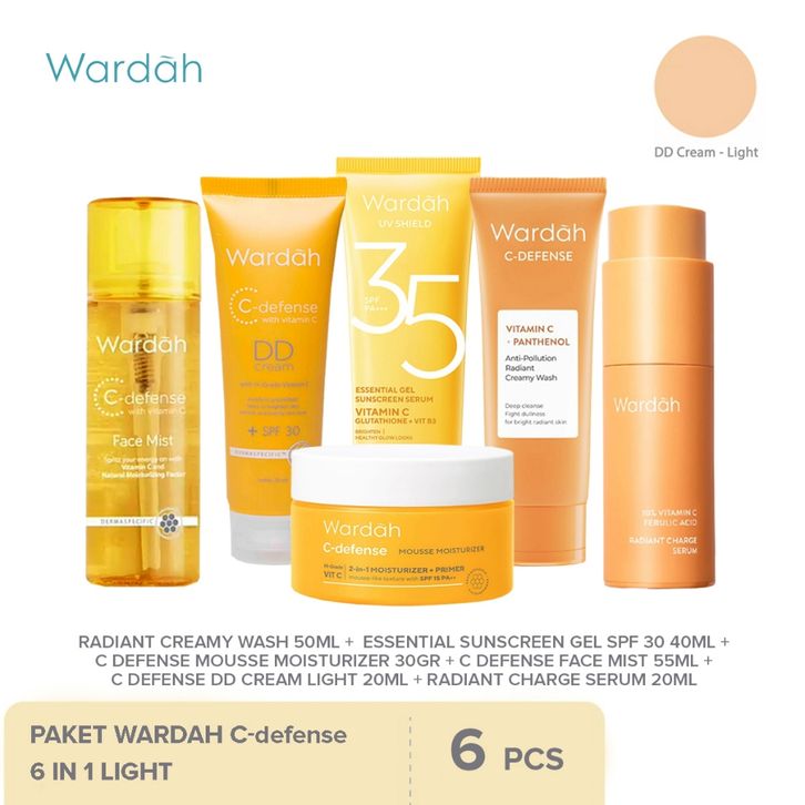 WARDAH C-Defense Vitamin C All Series Lengkap - Panthenol Anti-Pollution Radiant Creamy Wash, Energizing Paket Lengkap