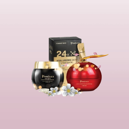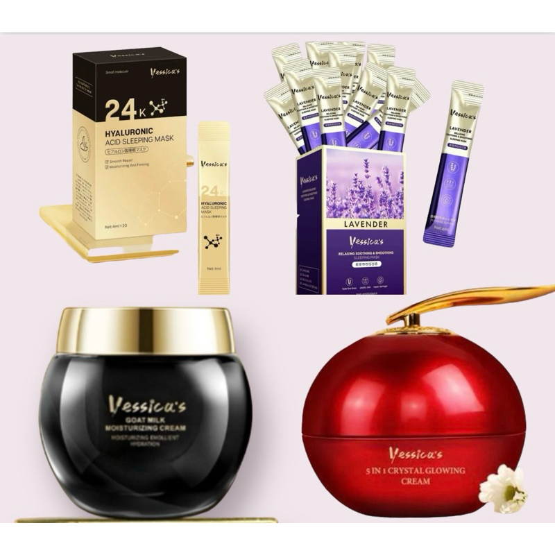 YESSICA 5IN1 CRYSTAL GLOWING CREAM/GOAT MILK MOISTURIZER/SLEEPING MASK|CLAY STICK|FOUNDATION / SETTING SPRAY / CLAY STIC