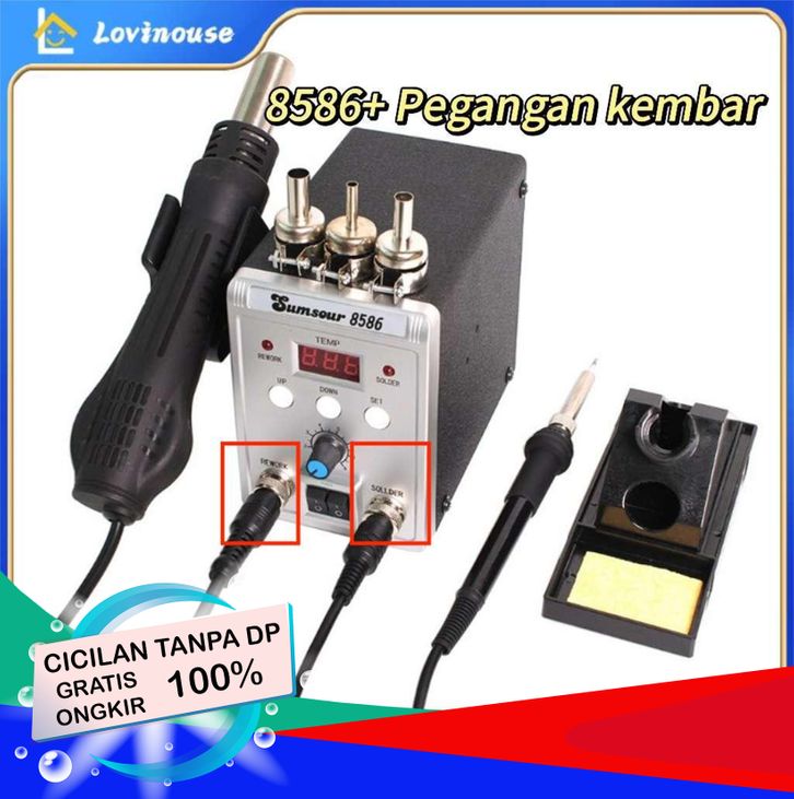 Stasiun Solder Blower Alat Las 8586 700W 2 in 1 Digital Display SMD Ulang Desoldering Heat Air Gun Solder Besi 220V ESD