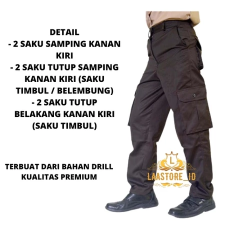 SERAGAM SEKOLAH - Celana Pramuka PDL Kempol Cargo (saku 6) SMP/SMA/Pembina Bahan Drill NAGATA
