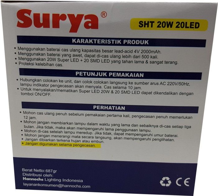 Senter lampu LED Surya SHT 20W Emergency 20LED White