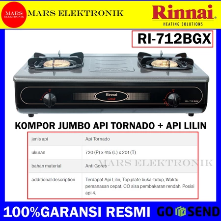 KOMPOR GAS RINNAI 2 TUNGU RI-712BGX / API TORNADO / RI 712 BGX / KOMPOR RINNAI 2 TUNGKU