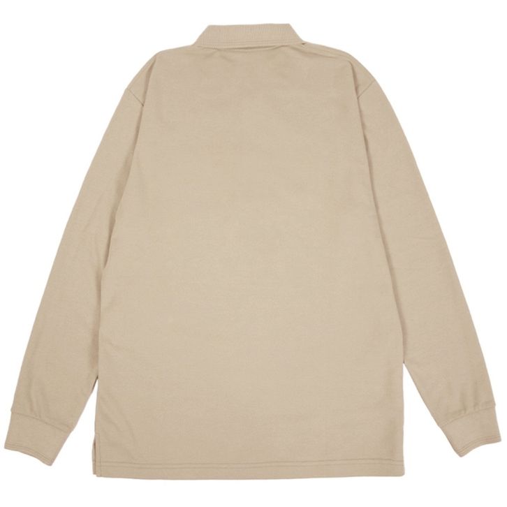 Rambidend Kaos Polo Kerah Lengan Panjang Polos Terkeren Pria Wanita Baju Kerah Cream