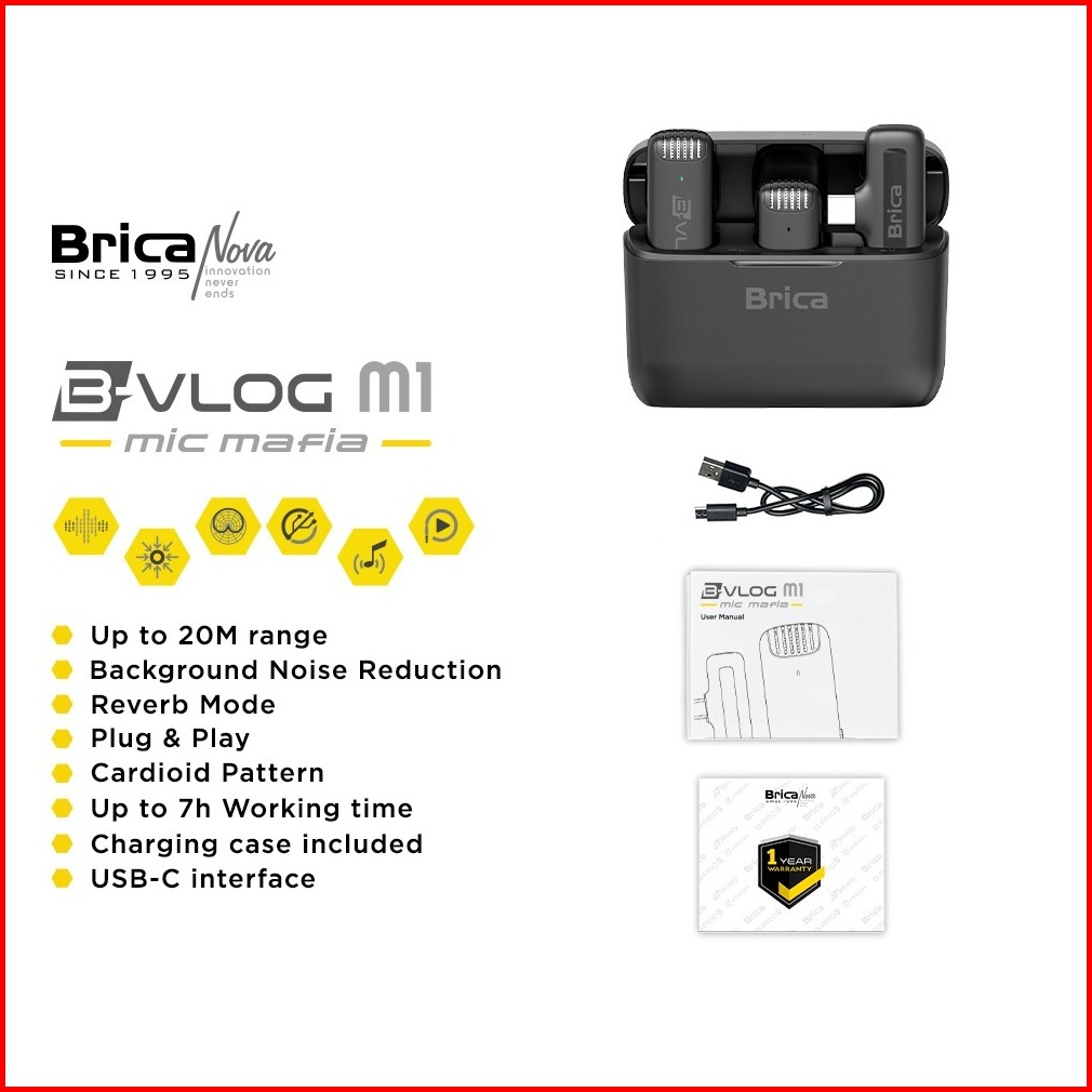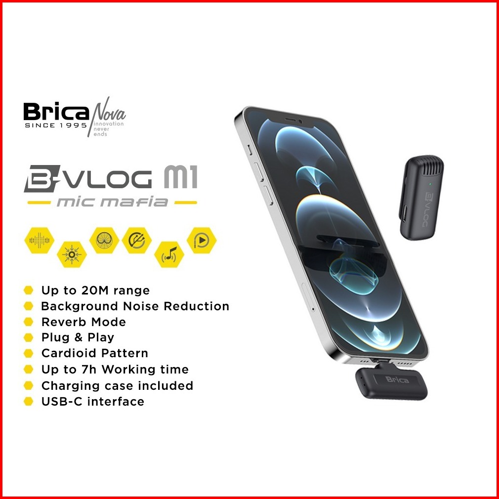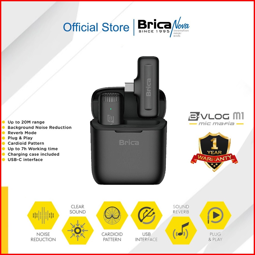 Brica B-vlog Series - M1s M1d M2 M3 Wireless Microphone - Clip On Mic Vlog Lavalier - With Charging Case Bvlog