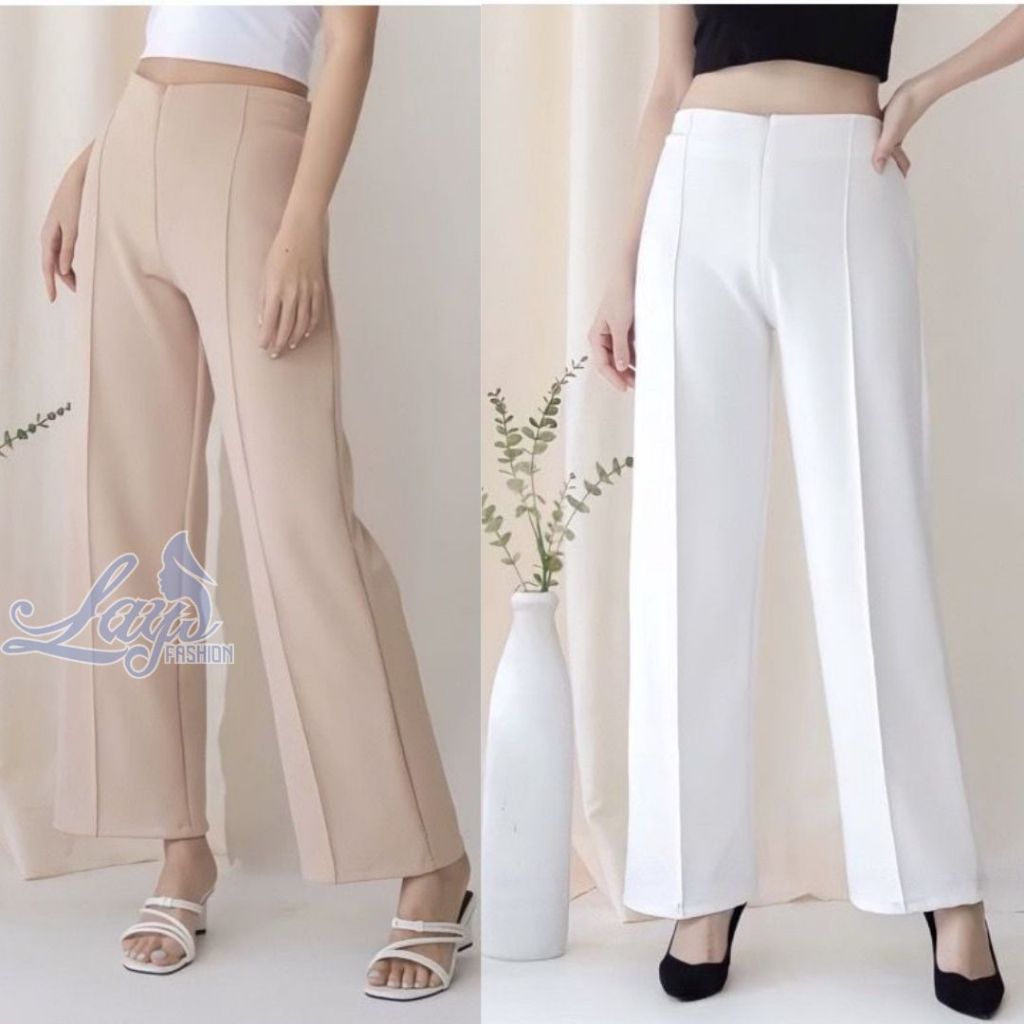 Celana Wanita Kulot Garis Basic HW Irene Cullotes Scuba Wide Leg Kulot Premium
