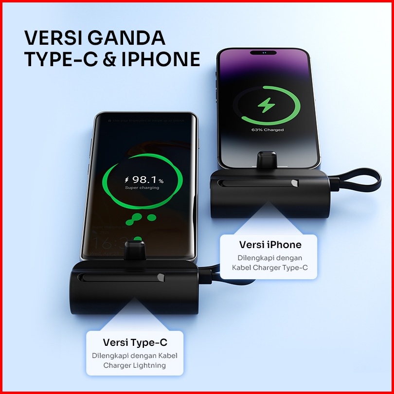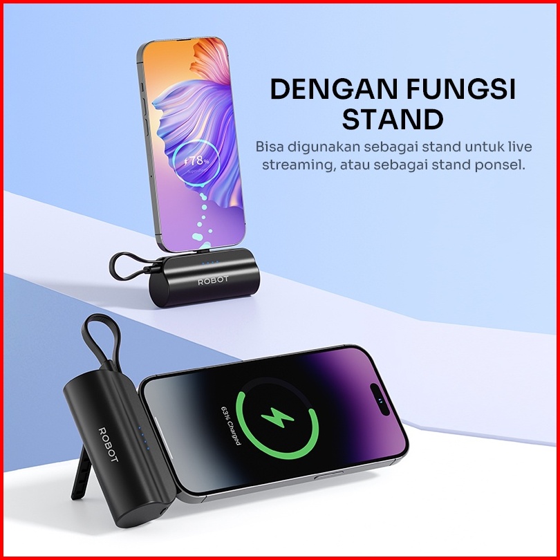 Mini Powerbank Robot 4500mah Port Type-c Lightning Travel Size Rp051l Rp051c - Garansi Resmi 1 Tahun