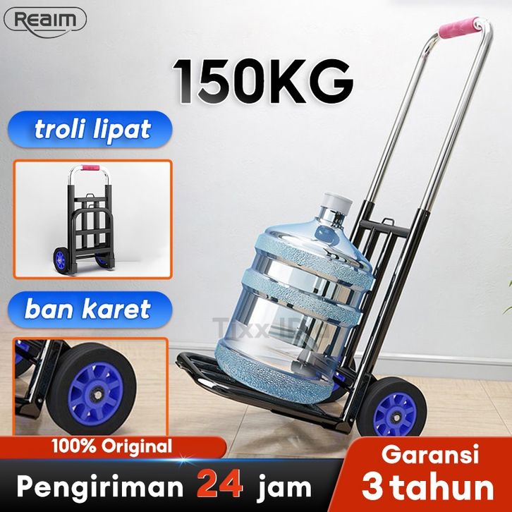 Troli Barang Lipat Hand Truck Folding Cart Silent Wheel Troli Angkut Handtruck besi Trolley Troly Lipat Serbaguna 150 kg