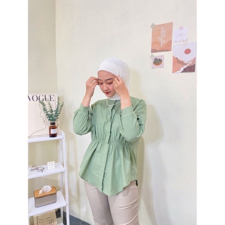 Kemeja Oversize Kerut Depan - ALYA LINEN SHIRT - Kemeja WanitaTerbaru - Kemeja Linen Premium