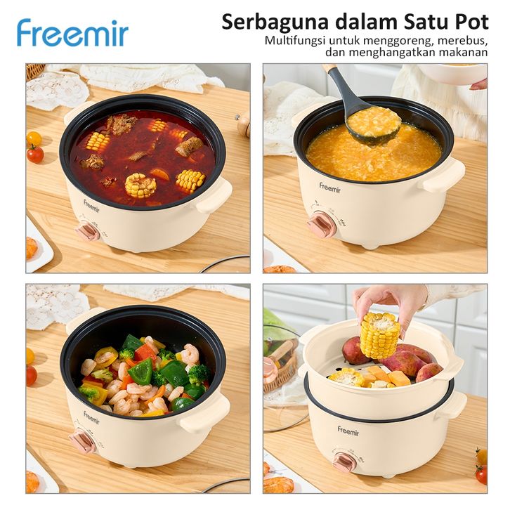 PANCI LISTRIK MULTIFUNGSI FREEMIR 24 CM GRATIS SPATULA PANCI MASAK ELEKRIK ANTI LENGKET DENGAN STEAMER GANDA