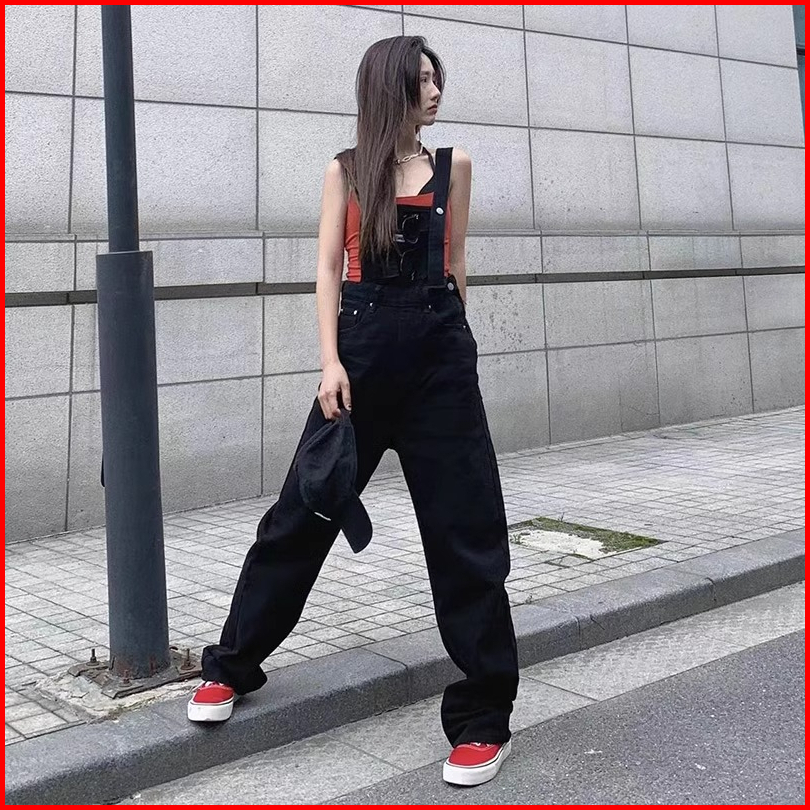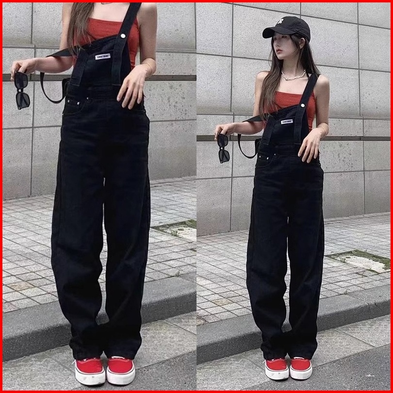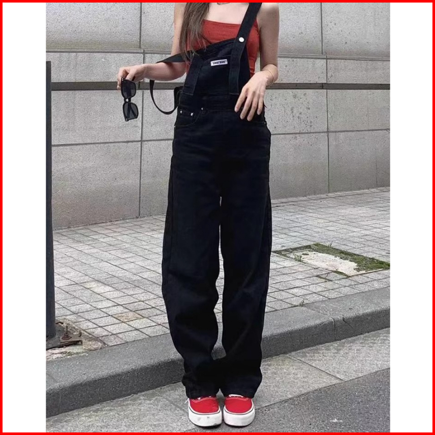 Kekinian Korean Hitam New Style Jumpsuit Jeans Wanita Jumpsuit Wanita Warna Hitam Pinggang Tingg Yang Longgar