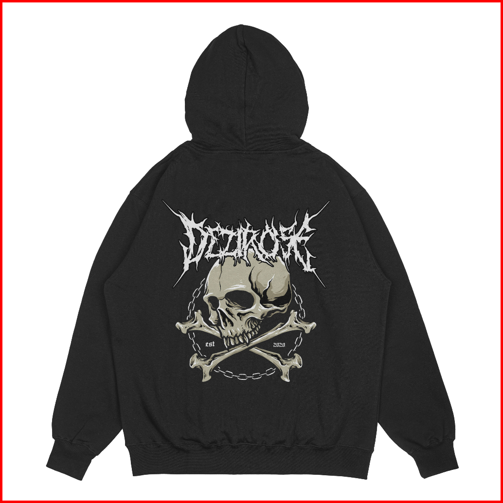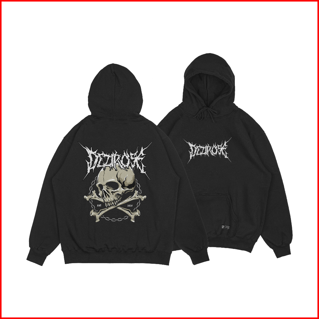 Dezirose Sweater Hoodie Metal Skull Pria Distro Hitam Fleece Tebal Premium Hoodie Cowok Size M-xxl