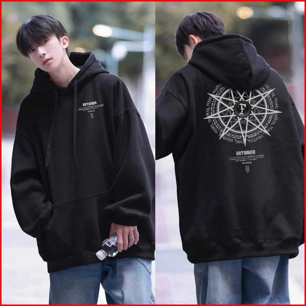 Nasa Idol Jaket Sweater Hoodie Boxy Pria Oversize Hitam Lengan Panjang C305