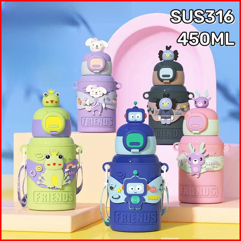 Botol Minum Anak Stainless 450ml Skoola Botol Tempat Air Minum Bahan Food Grade 316 Gelas Termos Anak Boneka Kartun